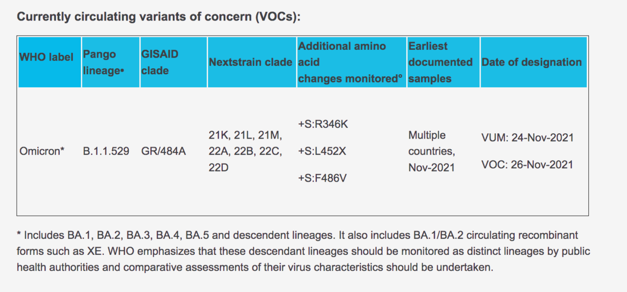 Sempre l’Organizzazione mondiale di Sanità, che monitora le varianti di SARS-CoV-2 circolanti nel mondo, ha eliminato dal giugno 2022 la variante Delta tra le varianti di interesse (VOC) circolanti, lasciando in lista solo Omicron e le sue sottovarianti.